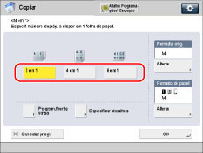 Este modo permite imprimir vários originais lidos ou originais frente e verso numa folha de papel. Pode selecionar 2, 4 ou 8 originais lidos para que a máquina os disponha na página. Também pode programar cópias frente e verso e alterar a disposição e ordem das imagens.