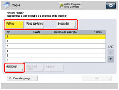 Se quiser programar [Inserir folhas] e [Adicionar capa], selecione papel do mesmo formato.