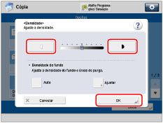 Se alterar a densidade em [Opções], o ajuste da densidade durante a cópia pode não ter qualquer efeito no resultado final.