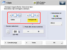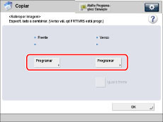 Para especificar as mesmas programações do que <Frente> para <Verso>, carregue em [Igual à frente].