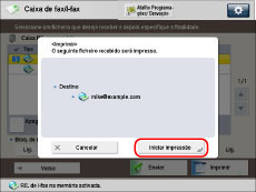 Se programar <Bloq. de memória p/I-fax> para "Desligado", os ficheiros recebidos através da função I-fax são automaticamente impressos e apagados da caixa RE. na memória.