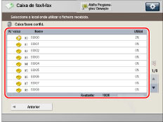 → [Caixa de fax/I-fax] → [Caixa faxes confid.].