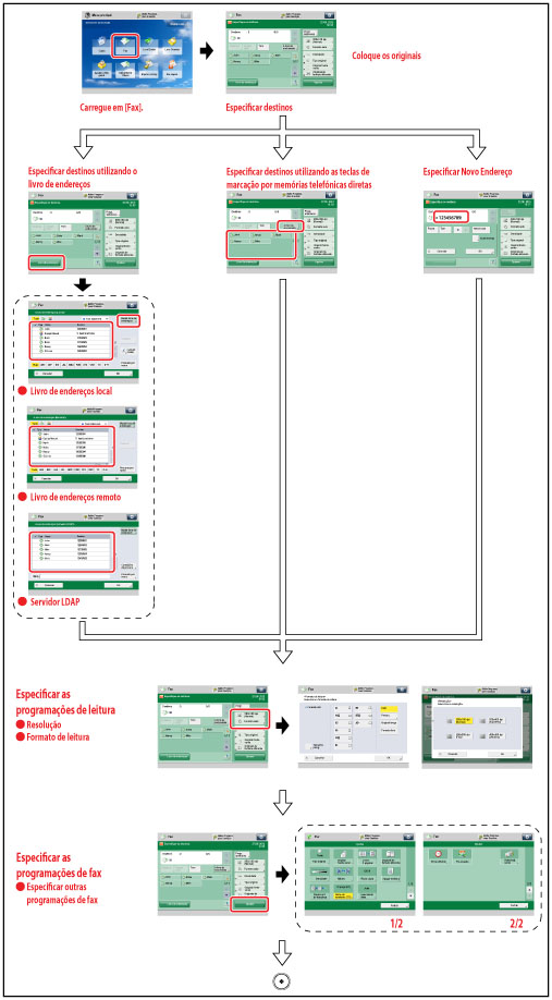 Carregue em [Alterar livro end.] para mudar a visualização para [Local], [Remoto] ou livro de endereços [Servidor LDAP].