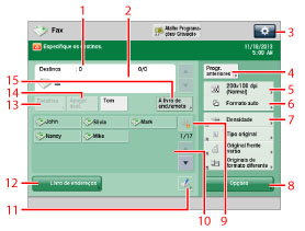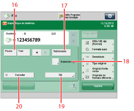 Carregue nesta tecla para programar funções de fax úteis, tais como enviar originais de formato diferente ao mesmo tempo ou enviar originais frente e verso.