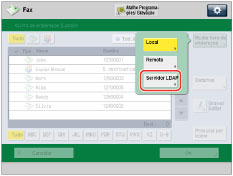 [Alterar livro end.] só aparece se gravar o livro de endereços remoto e registar o servidor LDAP. Se registar apenas o servidor LDAP na máquina, aparece [P/servidor LDAP].