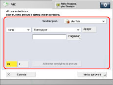 Se o resultado da procura em [Condições da procura] aparecer no ecrã de lista de procura, não pode carregar em [Procurar por nome] para reduzir a procura por nome.