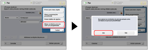 → [Alterar cond. procura LDAP pré-programadas] → [Sim].