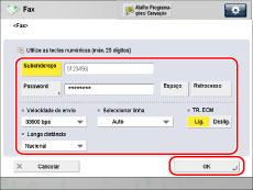 Se quiser anexar um subendereço ao trabalho de envio, certifique-se de que o fax do destinatário suporta os subendereços da norma ITU-T (International Telecommunication Union - Telecommunication Standardization Setor) (União internacional de telecomunicações - Setor de normalização das telecomunicações). (Consulte "Enviar com um subendereço.")