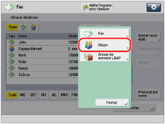 Se quiser guardar um endereço de grupo, só pode selecionar destinos gravados na mesma lista de endereços.