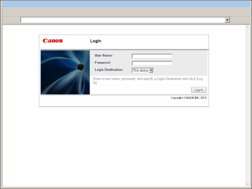 Select the login destination, and enter a user name and password to log in to the Remote UI or a MEAP application (including login applications).