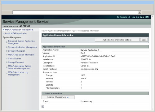 Depending on the application you are using, [Set Authentication] is displayed. For information on setting authentication information, see "Setting Application Authentication Information."