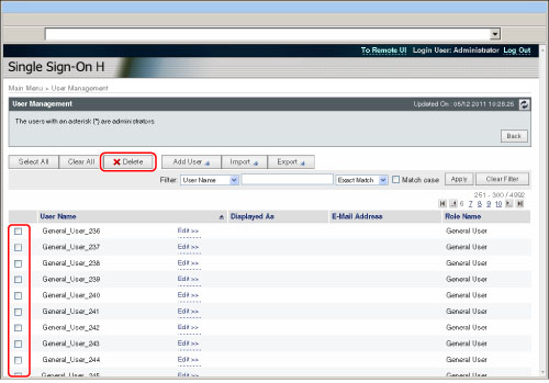 The user data that is logged in as the System Administrator (Administrator) cannot be deleted.