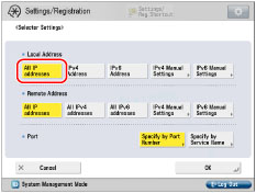 Press [All IP Addresses] for <Remote Address>.