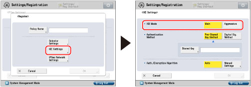 Press [IKE Settings] → select the mode to use for IKE phase 1.
