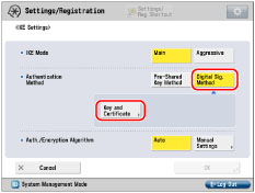 Press [Digital Sig. Method] for <Authentication Method> → [Key and Certificate].