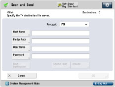 To use the host name of the above example for [Host Name], it is necessary to use a DNS server. (This applies even if the machine and the FTP server are in the same subnet.) If no DNS server is available, the setting for [Host Name] should be specified using the IP address of the FTP server.