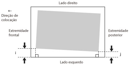 A marca "i" é impressa na extremidade frontal da esquerda e a marca "j" é impressa na extremidade posterior da esquerda, na direção de alimentação.