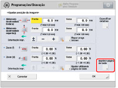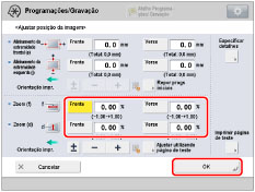 Programe o rácio de ampliação/redução (%) para <Zoom (f)> e <Zoom (d)> no ecrã <Ajustar posição da imagem> → carregue em [OK].