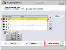 Selecione o tipo de papel que pretende editar na lista → carregue em [Detalhes/Editar].