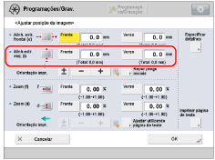 Quando voltar a abrir o ecrã, depois de o ter fechado carregando em [OK], os valores apresentados no ecrã voltam a "0". Contudo, o valor ajustado continua válido em cada campo Total. Se repetir o passo, verifique o comprimento de "i" na nova página de teste e introduza o novo valor.