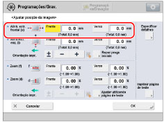 Quando voltar a abrir o ecrã, depois de o ter fechado carregando em [OK], os valores apresentados no ecrã voltam a "0". Contudo, o valor ajustado continua válido em cada campo Total. Se repetir o passo, verifique o comprimento de "e" na nova página de teste e introduza o novo valor.