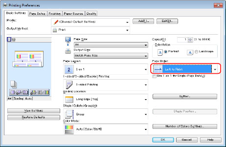 If you cannot select the options for [Page Layout], display the [Device Settings] tab, and then select [Auto] or [Enabled] from [Spooling at Host]. For instructions on how to display the [Device Settings] tab, see "Setting the Printer Options."