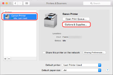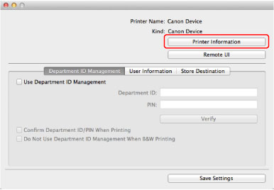 If the printer driver name displayed at the top of the [Printer Information] dialog box and the printer name displayed as [Name Retrieved from Printer] do not correspond correctly, you may not be able to use the printer functions correctly. If the names do not correspond, delete the printer you have added in [System Preferences] and add it again. For details, see the Printer Driver Guide (see " Installation").