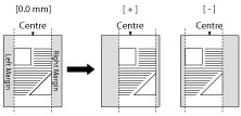 Increasing the setting value moves the image in the rightward X direction on the paper. Decreasing the setting value moves the image in the leftward X direction on the paper.