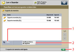 Carregue nesta tecla para verificar os detalhes do suporte de memória.