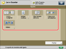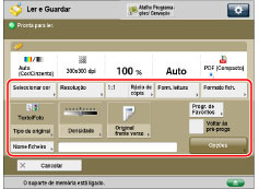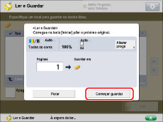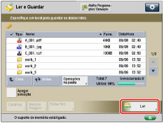 Para guardar as imagens lidas no suporte de memória, programe <Utilizar a função Ler> em [Utilizar a função Ler/Imprimir] para 'Ligado'. (Consulte "Programações de suporte de memória.")