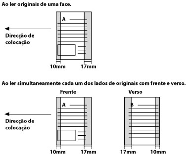 Se as secções a cores estiverem localizadas apenas no intervalo indicado pelo diagrama abaixo, quando colocar os originais no alimentador
