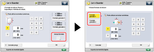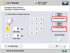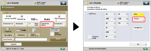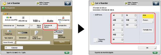Pode especificar manualmente um formato de leitura quando fizer a leitura de originais que não podem ser detetados utilizando [Auto]. Também pode gravar o formato de leitura especificado.