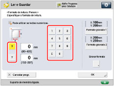 Carregue em [X] ou [Y] → introduza o formato de leitura em mm.