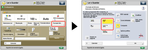 Só pode adicionar assinaturas do dispositivo a ficheiros PDF ou XPS e guardá-las, se tiver gerado um certificado da assinatura do dispositivo e um par de chaves. (Consulte "Assinaturas digitais.")