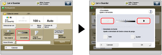 Na leitura, pode ajustar a densidade para o nível mais adequado ao original.