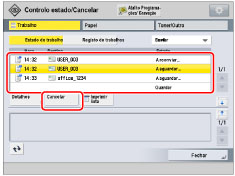 Não pode selecionar vários trabalhos e cancelá-los todos de uma vez. Selecione e cancele um trabalho de cada vez.