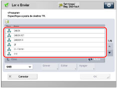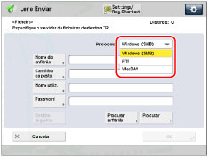 Depois de ligar a máquina, tem de aguardar que decorra o tempo especificado em [Tempo de espera para ligação no arranque] antes de carregar em [Procurar]. A transmissão por rede só é possível depois de decorrido o tempo de arranque. (Consulte "Setting the Waiting Time for Connection at Startup.")