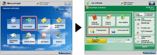 na parte superior direita do ecrã → [Gravar/Editar informações para cada utilizador] → [Pasta pessoal].O administrador pode limitar os destinos para a transmissão de ficheiros para cada pasta pessoal do utilizador em geral. (Consulte "Restringir destino para transmissão de ficheiros.")