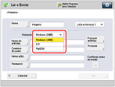 Para obter mais informações sobre os protocolos disponíveis, consulte "Especificar um servidor de ficheiros utilizando o teclado".