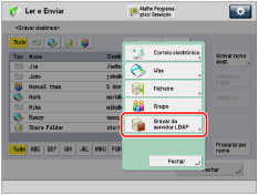 Pode também gravar endereços de correio eletrónico obtidos como endereços de I-fax.