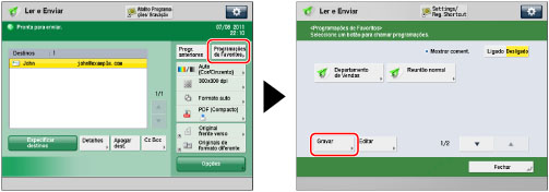 → [Ler e Enviar] → especifique o destino e as programações de envio que pretende gravar.
