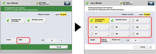 Carregue em [Editar] → selecione a tecla que pretende apagar → carregue em [Apagar].
