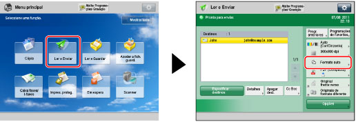 → [Ler e Enviar] → especifique o destino → carregue na tecla de formato de leitura.