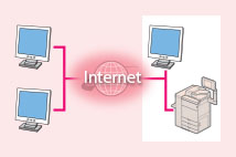 Se lhe for atribuído um endereço IP global, a sua impressora/máquina multifunções está aberta ao público e permite o acesso via Internet. Sendo assim, aumenta o risco de fuga de informação devido ao acesso não autorizado a partir de rede externa. Por outro lado, se lhe for atribuído um endereço IP privado, a sua impressora/máquina multifunções está fechada a redes externas e o acesso só é permitido a utilizadores da sua rede de área local, como uma LAN na empresa.