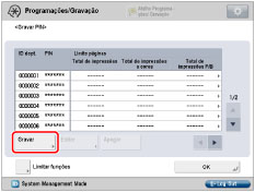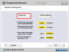 Se a função Gestão ID departamento for ativada através do Leitor de cartões de cópia-F1, não pode gravar/apagar as ID de departamento.