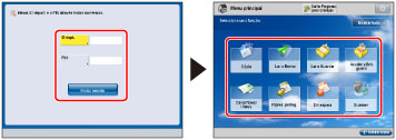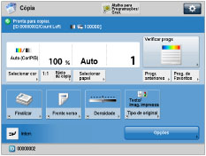 Se a gestão da máquina estiver a ser feita com cartões de controlo e houver uma função cujo limite esteja programado para 'Desligado' em [Limitar funções], o ecrã Menu principal aparece quando a máquina arrancar. Neste caso, execute o procedimento a partir do passo 1 sem introduzir um cartão de controlo.
