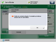 A máquina interrompe a leitura, se o limite de leitura for atingido enquanto estiver a ler originais colocados no alimentador. (Os originais cuja leitura foi feita antes de o limite ter sido atingido não são adicionados à contagem das leituras.)