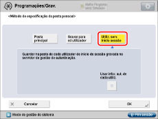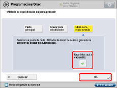 Pode utilizar pastas pessoais sem ter de especificar informações de autenticação para cada utilizador, desde que se cumpram as condições abaixo indicadas. Nesse caso, anule a seleção [Usar infor. aut. de cada utiliz.].