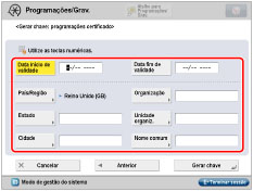 Depois de carregar em [Gerar chave], não pode utilizar qualquer das chaves antes de gerar e gravar um par de chaves.