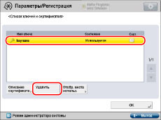 Os pares de chaves para os quais aparece a opção 'Utilizd' em <Estado> não podem ser apagados porque estão a ser utilizados com a autenticação IEEE802.1X/IPSec ou porque o TLS está programado para 'Ligado'. Carregue em [Mostrar local de utilização] para verificar o tipo de segurança para o qual está a ser utilizado o par de chaves. Para apagar um par de chaves que está a ser utilizado apenas com o TLS, especifique as seguintes programações para 'Desligado'. Um par de chaves que esteja a ser utilizado para autenticação IEEE802.1X/IPSec não pode ser apagado.